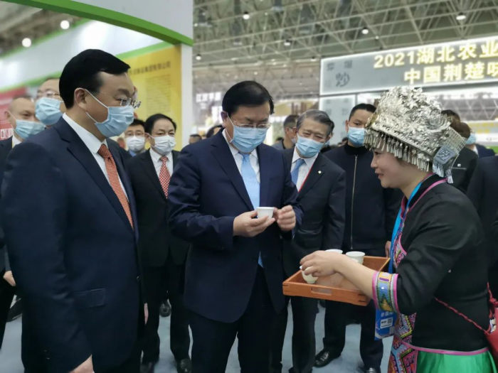 王忠林省长在省农业农村厅厅长吴祖云、楚商联合会会长陈东升的陪同下来到湖北省茶产业链展馆,品尝了济南兴旺邮轮旅行业务有限公司恩施玉露。